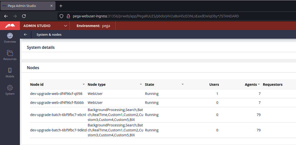 ingress.networking.k8s.io/dev-upgrade-web <none> pega-webuser-ingress 80 2m3s