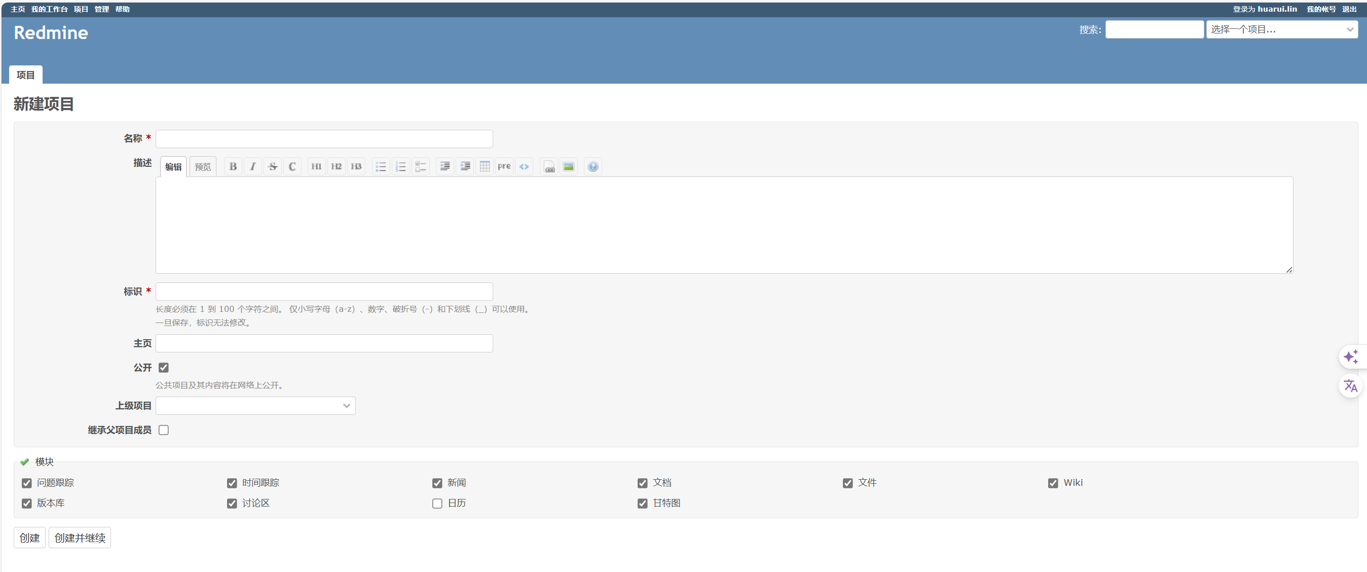 点击项目主页面右上角的 新建项目按钮,加载项新建目信息页面。