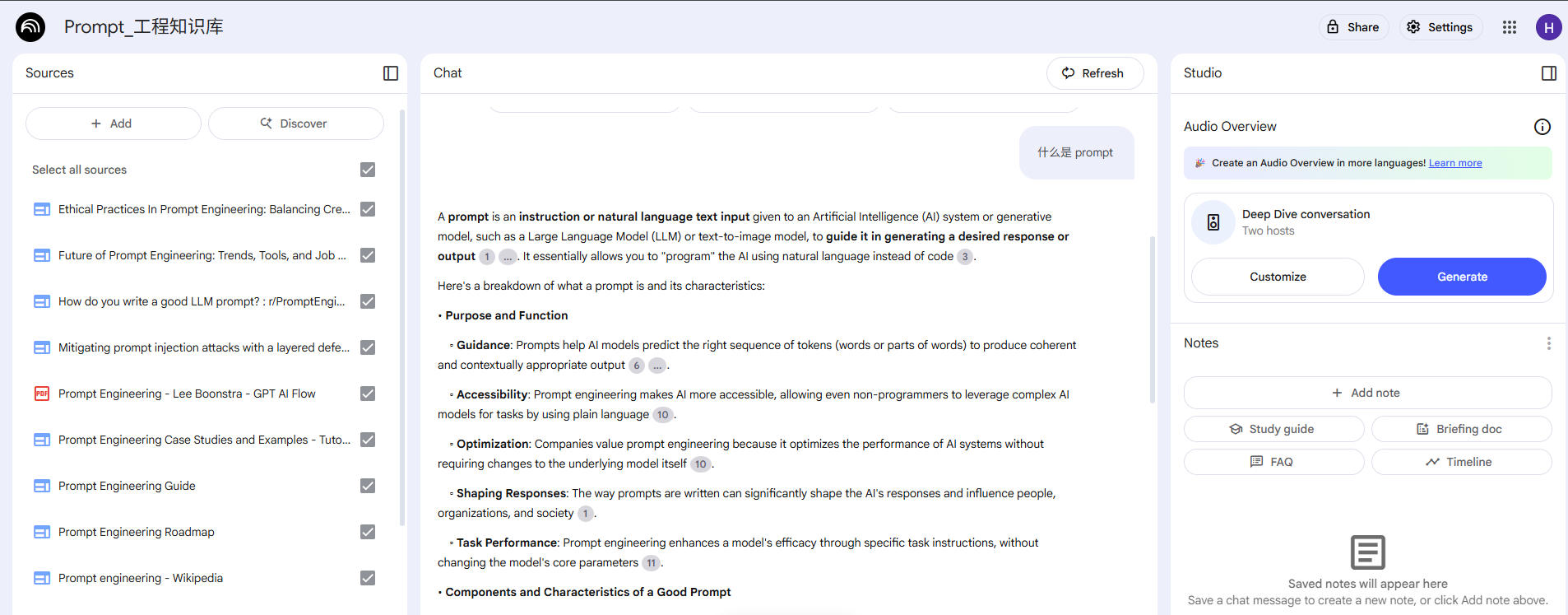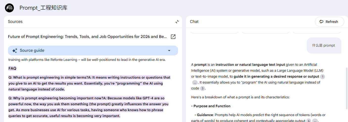 - 输入需要查询的内容,例如:“Prompt 工程知识”