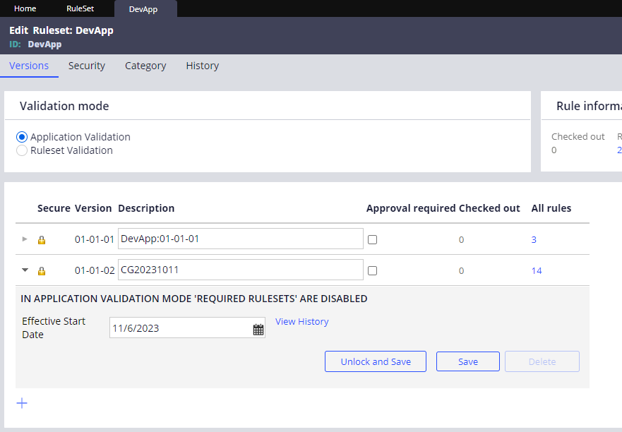 在开发过程中,当我们完成版本开发后,为了确保版本内的内容不可再编辑,因此需要锁定 Ruleset 版本。