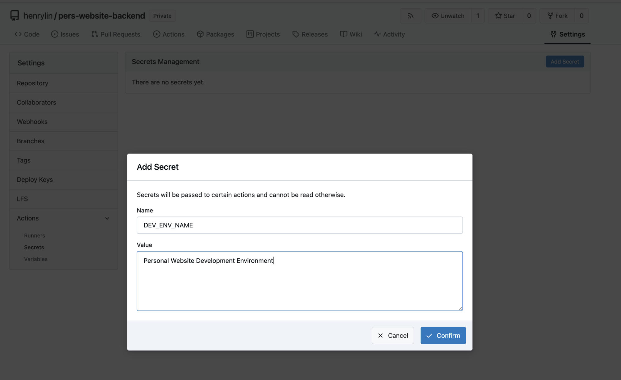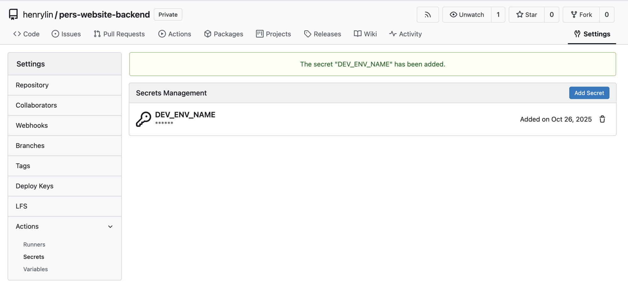 背景简介 Gitea 创建 Secret 前置信息 Gitea 1.23 详细信息 管理员登录 Gitea 点击: 仓库 > Settings > Actions > Secrets 点击 Add Secret 点击 Confim 保存 以上便是本文的全部内容,感谢您的阅读,如遇到任何问题,欢迎在评论区留言讨论。