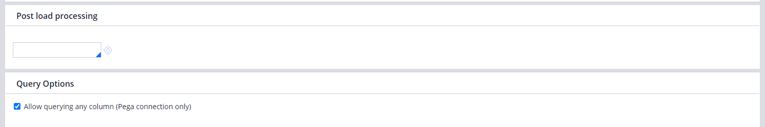 - Query Options: Allow querying any column (Pega connection only)