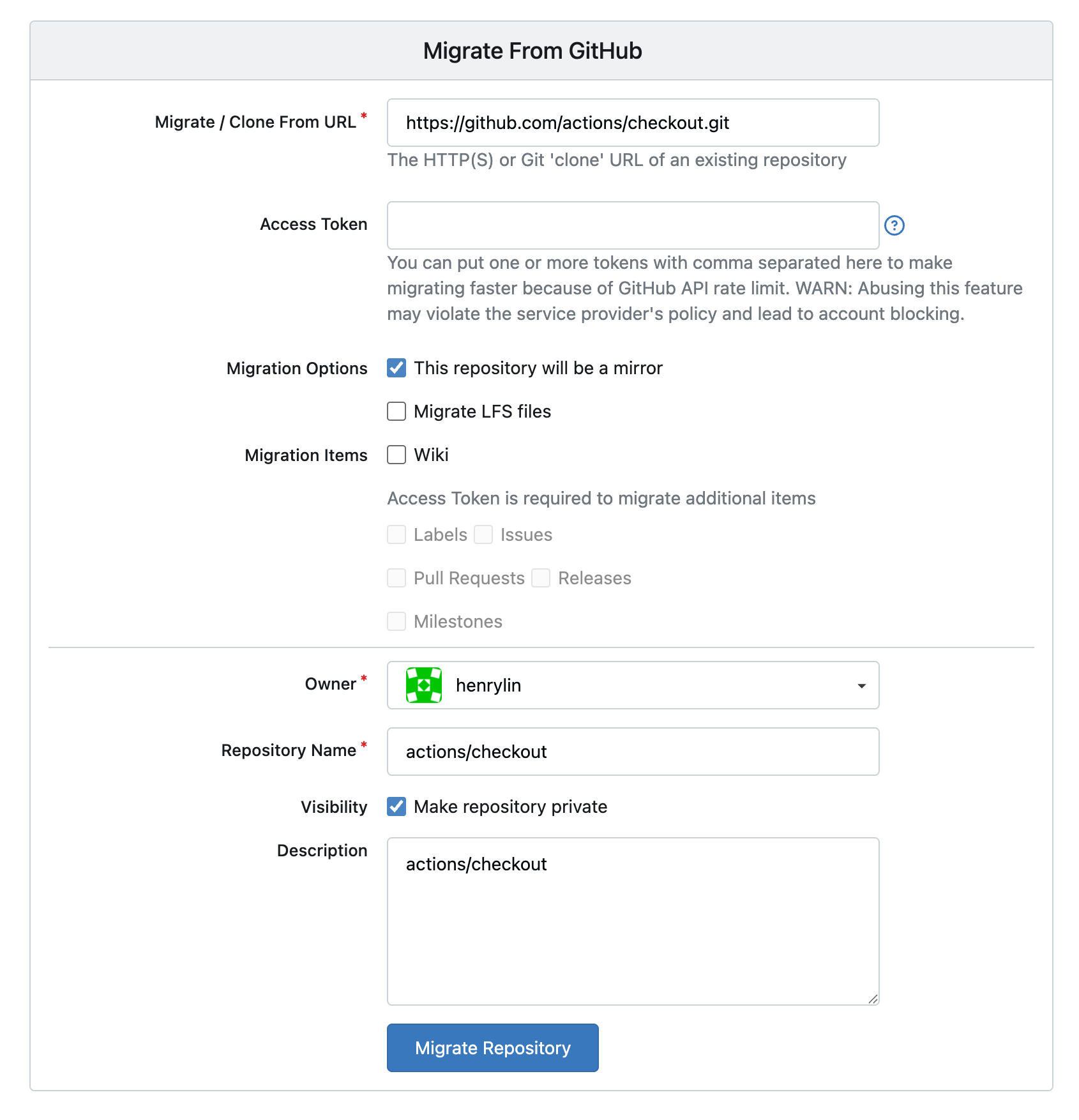 镜像 Github actions/checkout 仓库到自己的 Gitea 仓库。