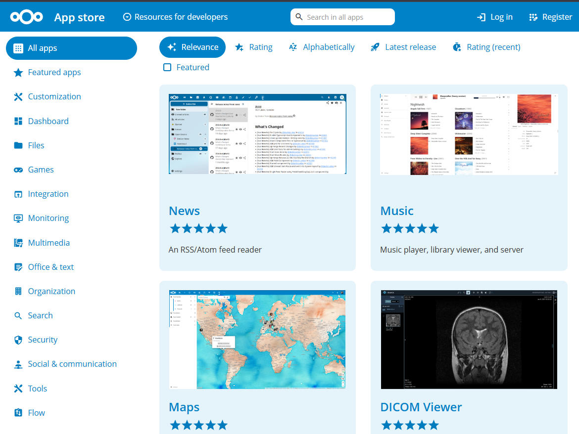 登录 nextcloud app store 官方网站: