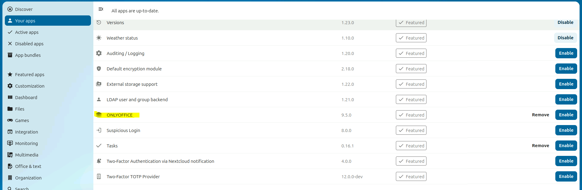 选择自己需要的 App,比如 ONLYOFFICE