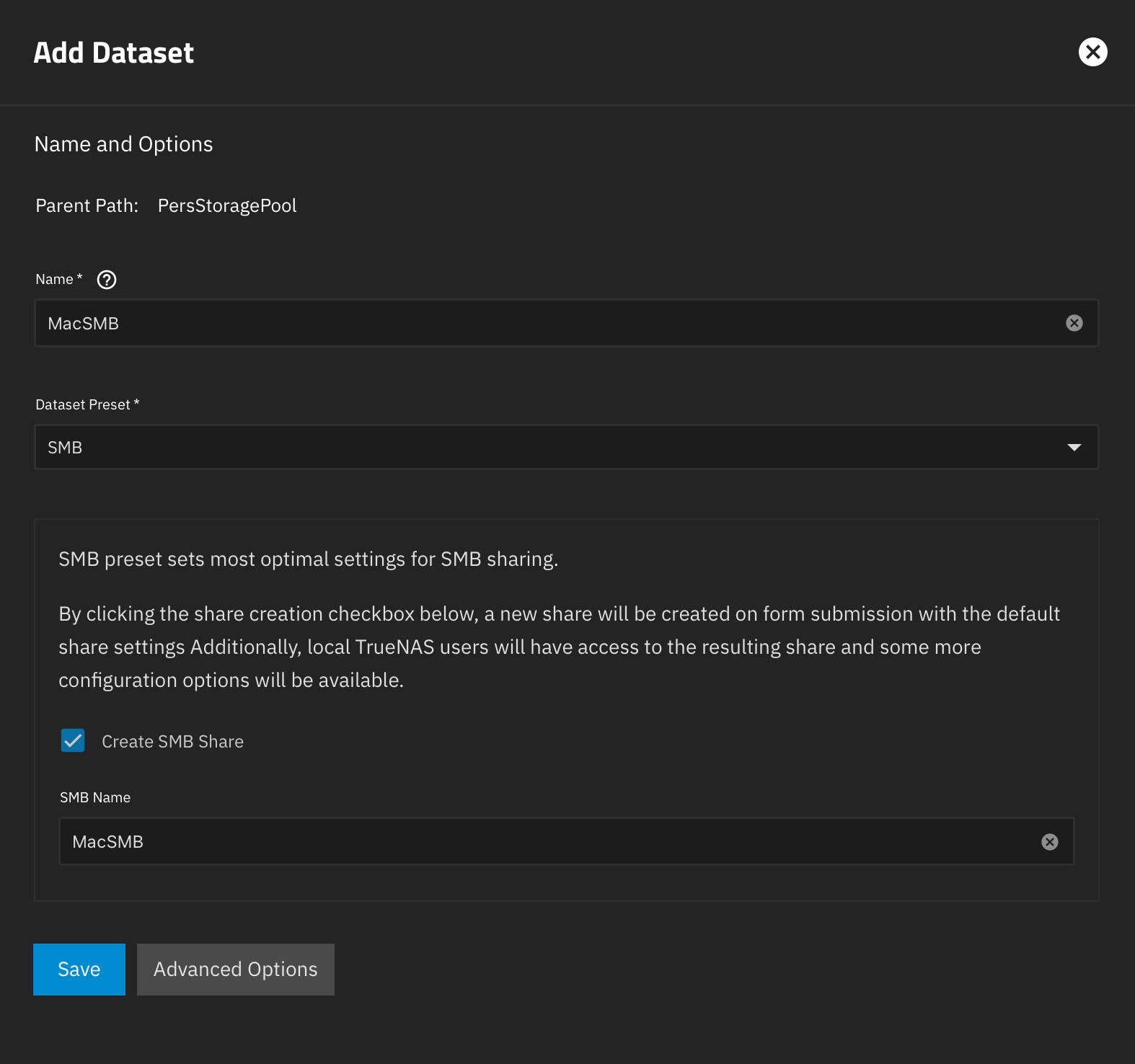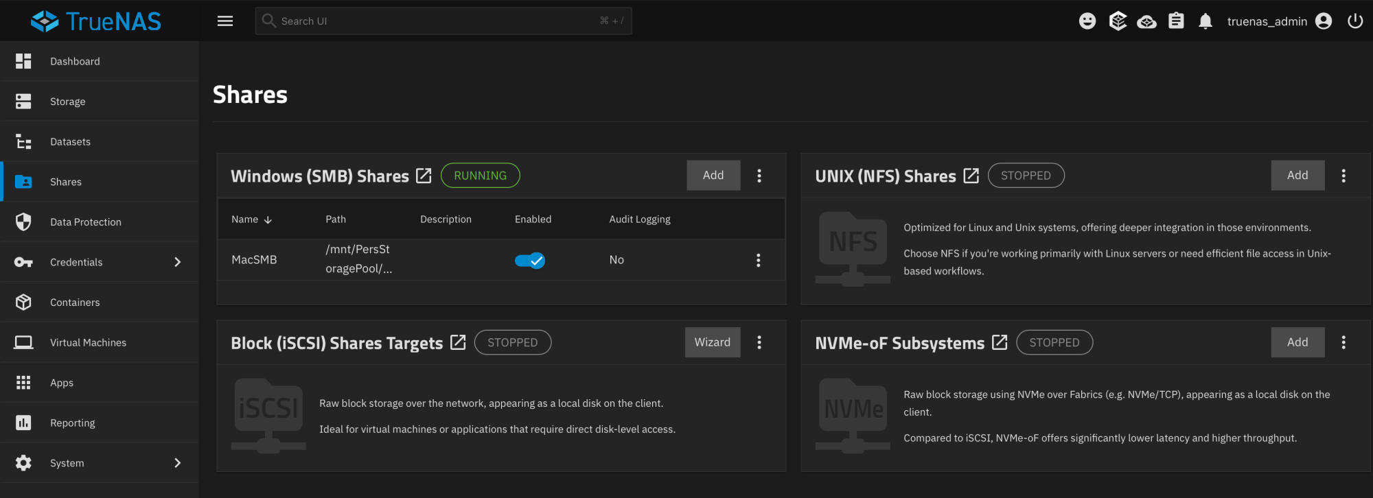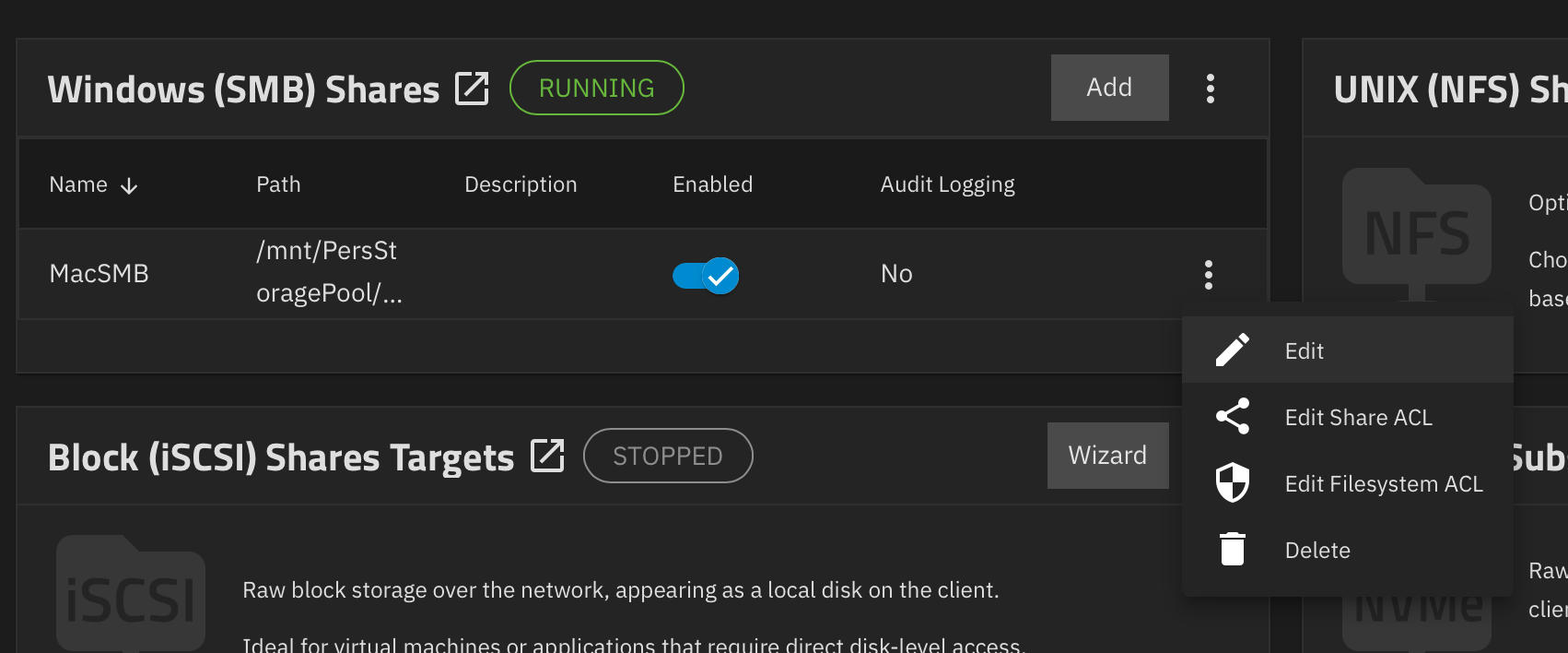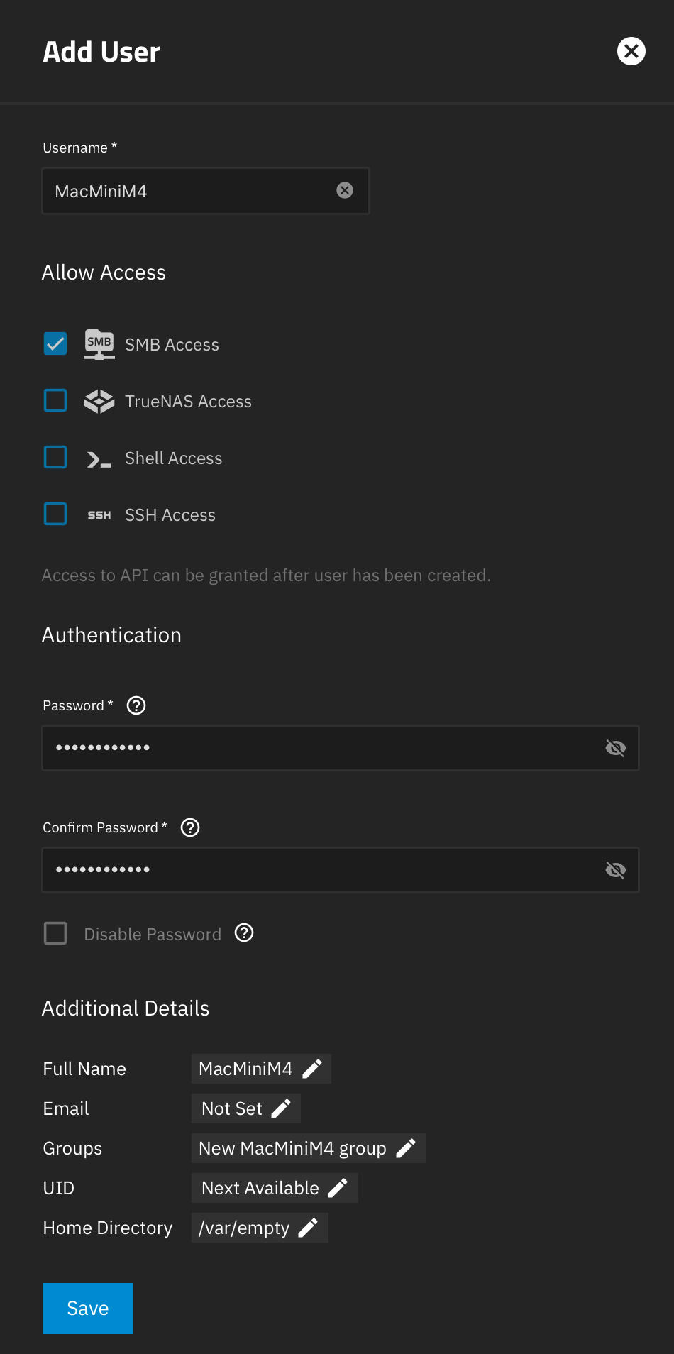 使用 TrueNAS 配置 SMB 服务,作为 Mac 或 Windows 的拓展磁盘。