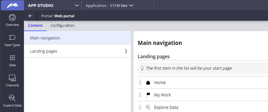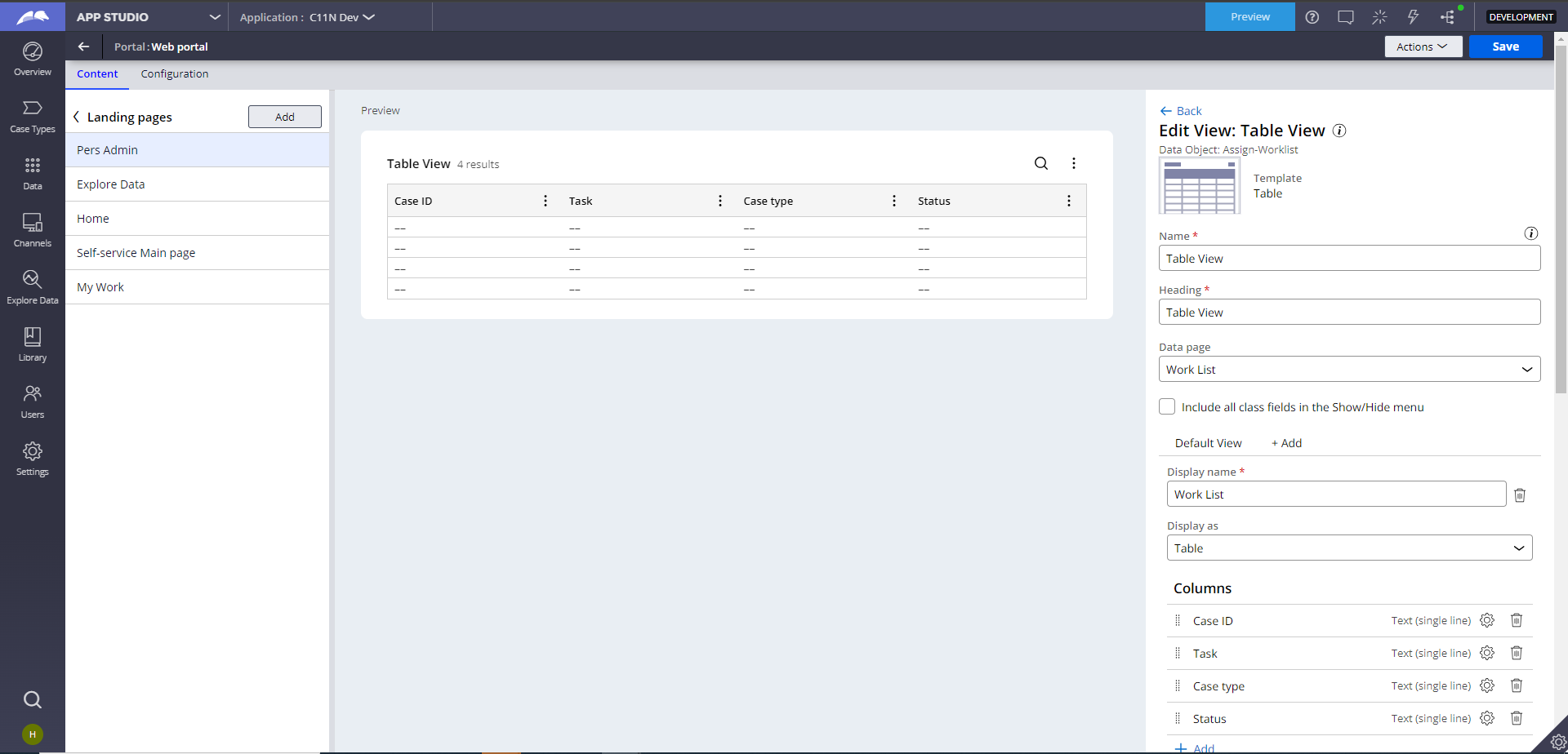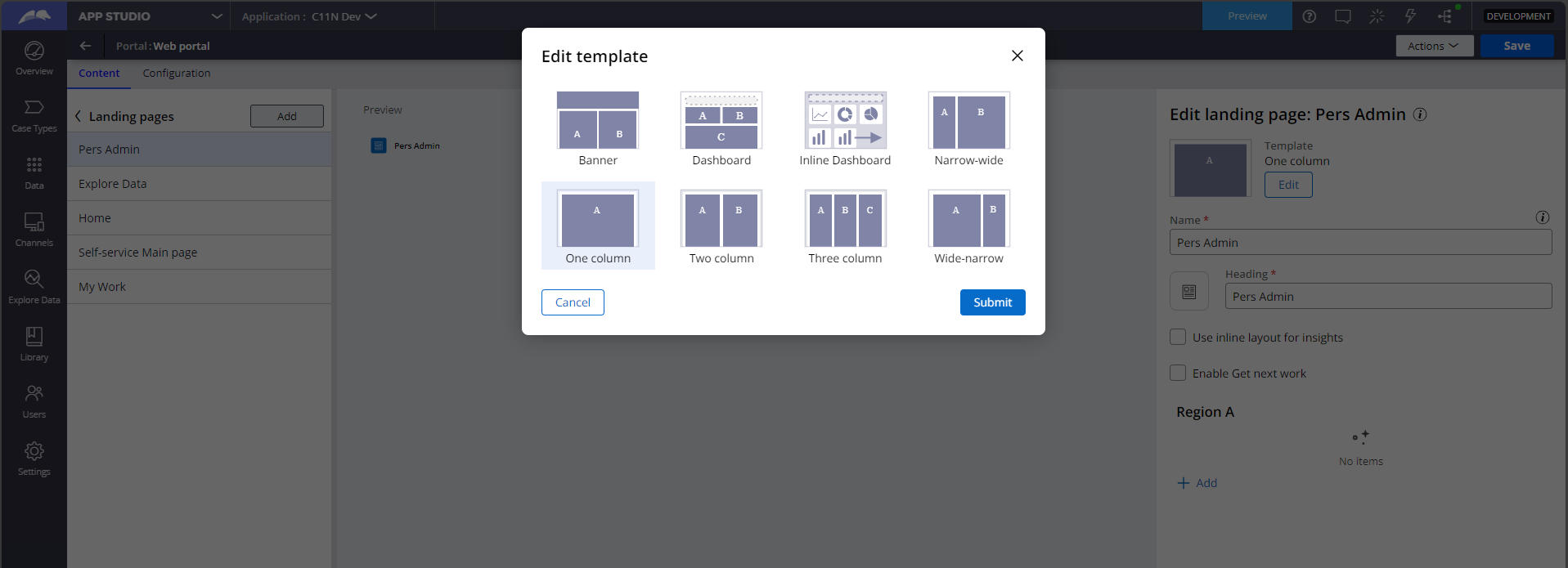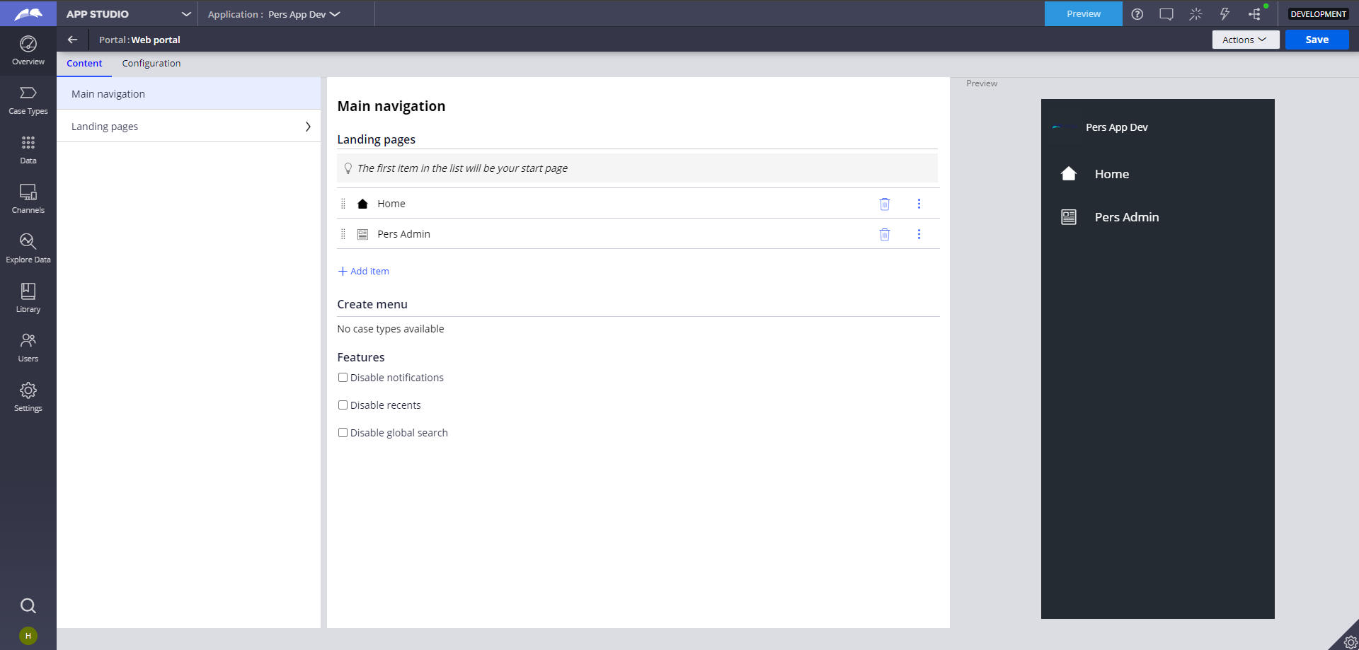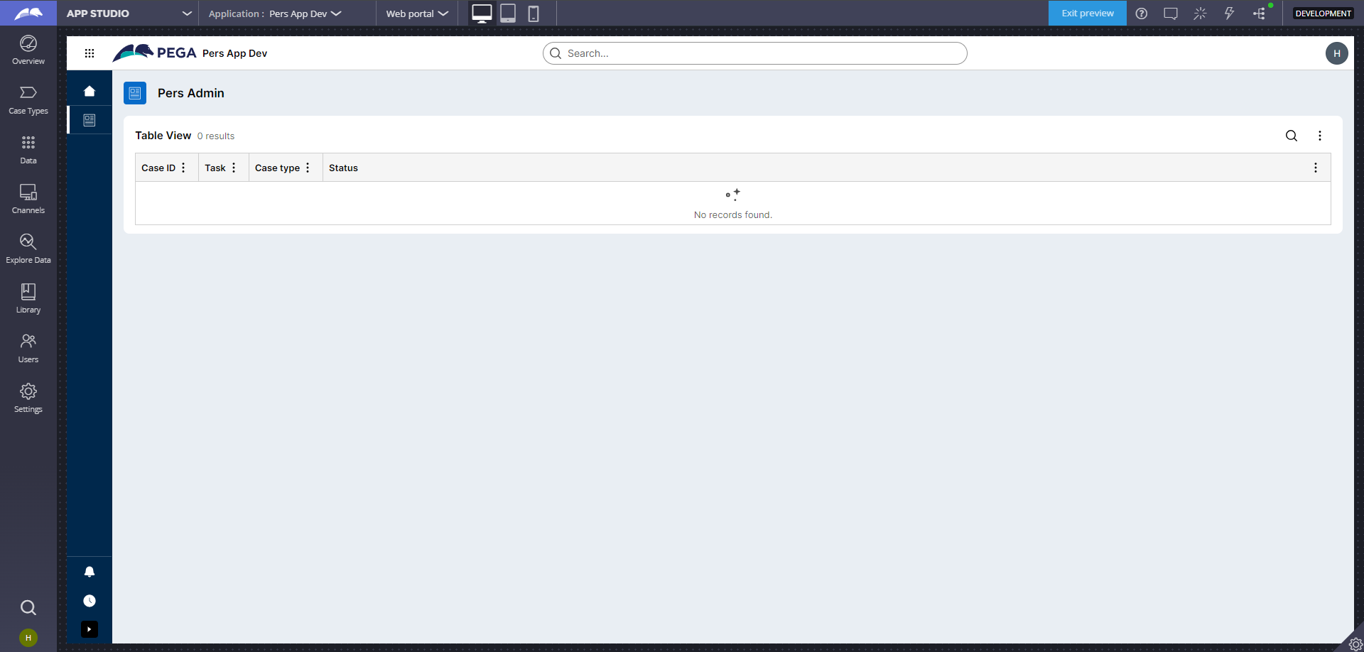 切换至 Pers App Dev App Studio Web Portal开发界面