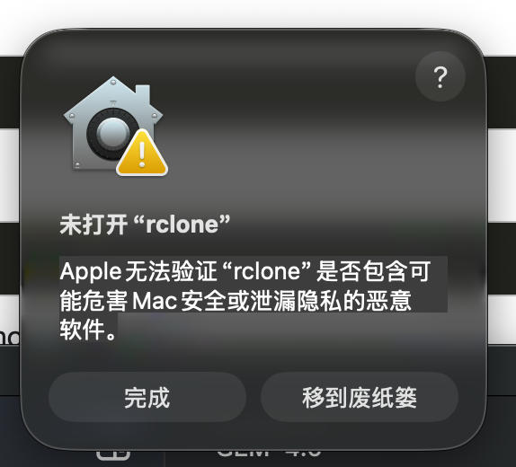 xattr -d com.apple.quarantine /usr/local/bin/rclone